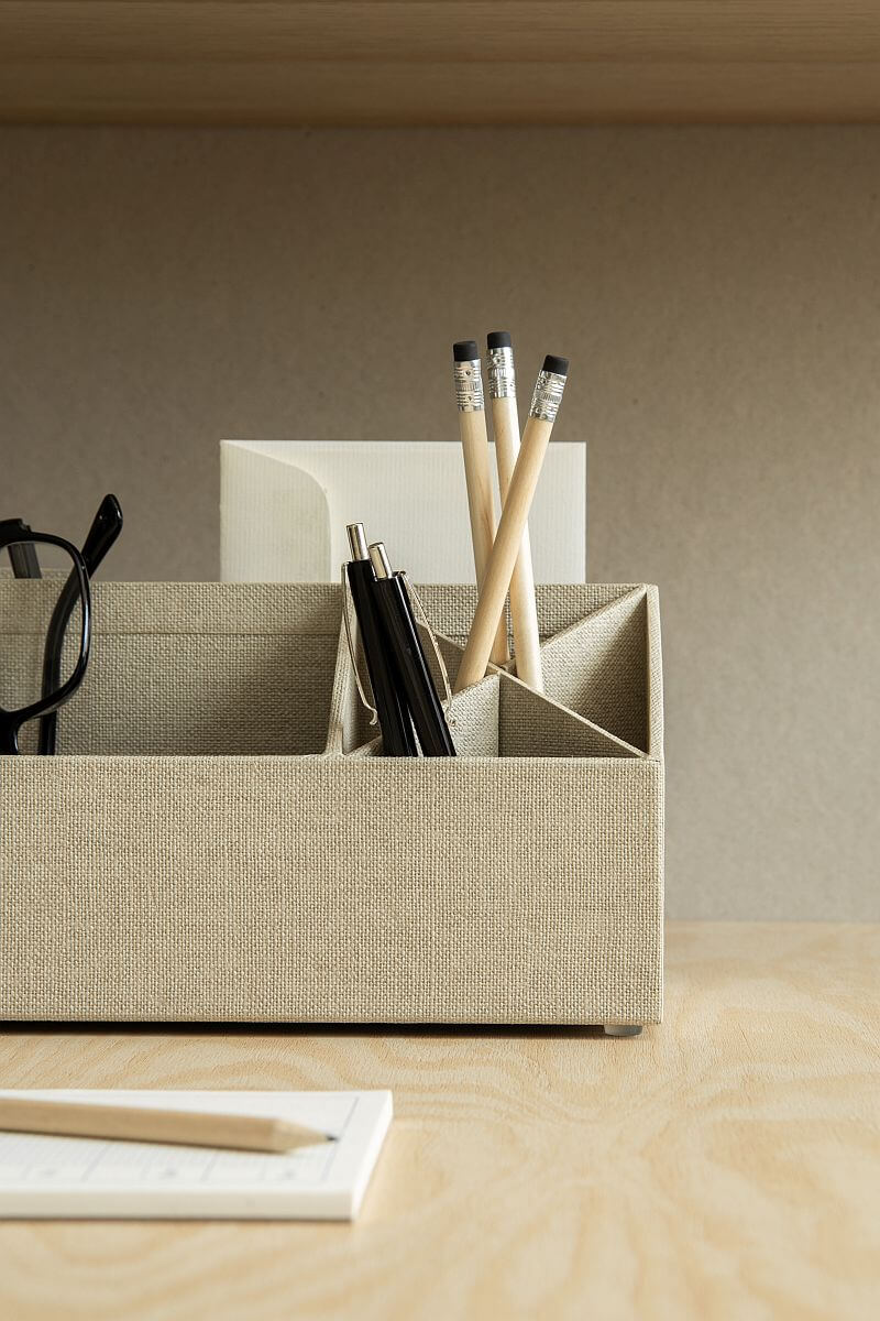Eleganz trifft Ordnung – Der Schreibtischorganizer in edler Leinenoptik