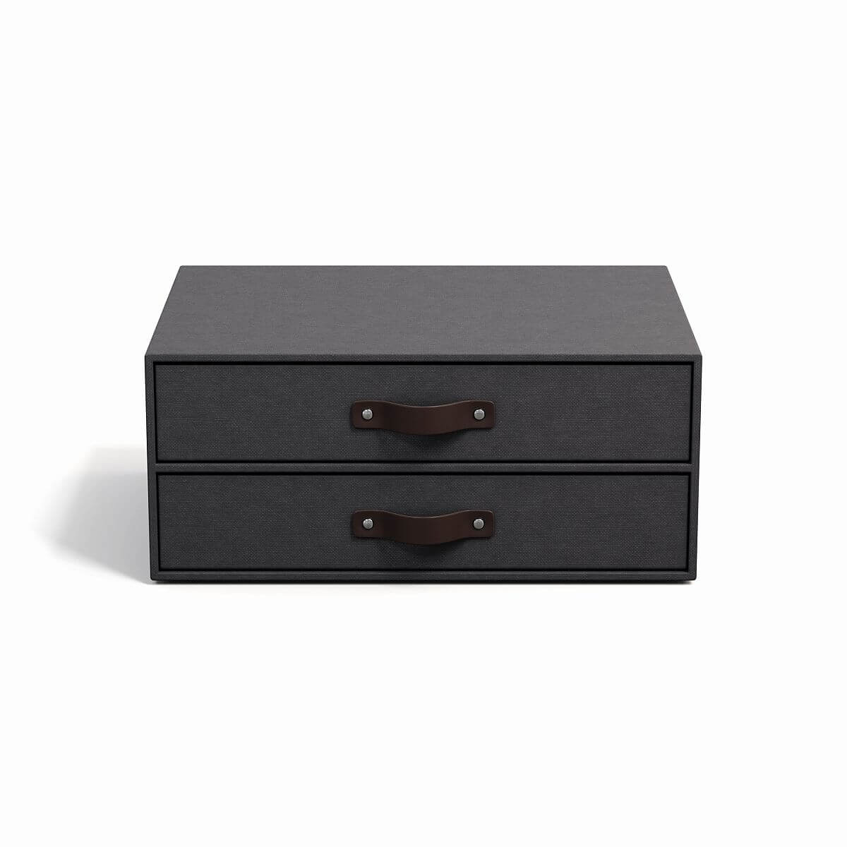Die beiden leichtgängigen Schubladen bieten großzügigen Stauraum für Dokumente, Büroutensilien, Fotos, Bastelmaterial oder persönliche Gegenstände. Dank der robusten Materialien und der präzisen Verarbeitung bleibt die Box auch bei täglicher Nutzung formstabil und zuverlässig. Perfekt für den Einsatz im Büro, im Home-Office oder als dekoratives Ordnungselement im Wohnbereich.