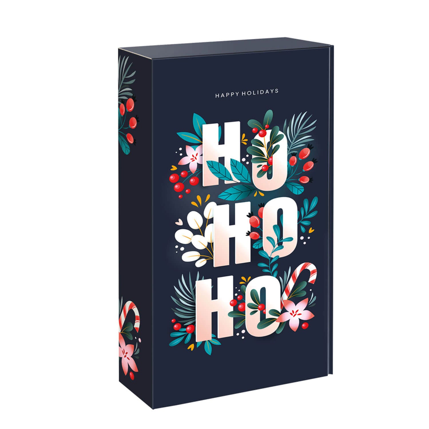 Coffret à bouteilles « Ho Ho Ho » avec couvercle à charnière pour 2 ou 3 bouteilles – emballage cadeau élégant en carton robuste